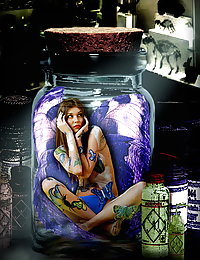 Nude Alice May displays her creamy, petite body and trimmed pussy on the chair.