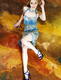 Nude Rebecca G sensually strips in the studio as she bares her tight body.