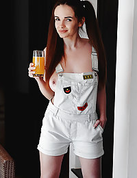Nude Maible bares her delectable titties as she strips her jumper shorts.