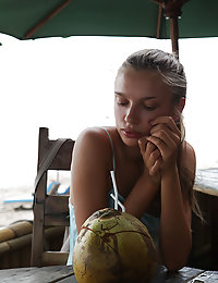 Nude Elin flaunts her sexy, slender body and beautiful tits at the beach.