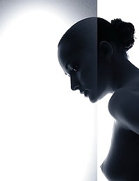 Nude Bambi Joli displays her petite body and sweet ass on the couch.
