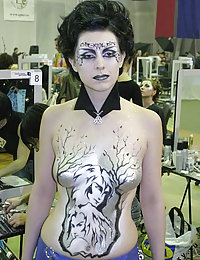 Nude Adel Morel flaunts her petite body with sexy tan lines as she poses on the ladder.