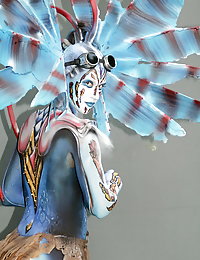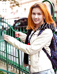 Nude Cristin bares her slender body with perky tits and shaved pussy as she strips on the chair.