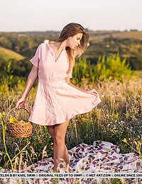Nude Solana A bares her slender body and smooth pussy on the bed.