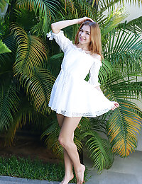 Nude Newcomer Delizi bares her creamy body with pink nipples on the sofa.