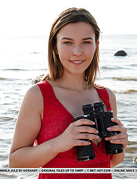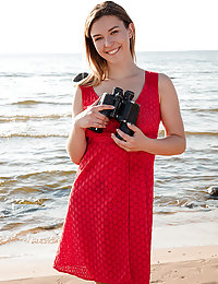 Nude Dominika Jule playfully poses by the beach as she bares her sexy, slender body.