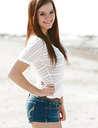Nude Newcomer Lea Rose strips outdoors as she bares her perky tits and smooth pussy.