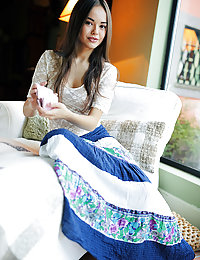 Nude Asian beauty Li Moon shows off her delectable body in front of the camera.