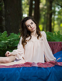 Nude Debora lays down comfortably and flaunts her youthful beauty
