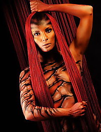 Nude Staffie bares her sweet, pink pussy as she poses on the chair.