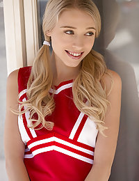Nude Cheerleader Riley Anne shows off her beautiful tits and trimmed pussy.
