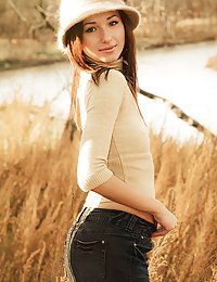 Nude Elin displays her smoldering body as she strips by the beach.
